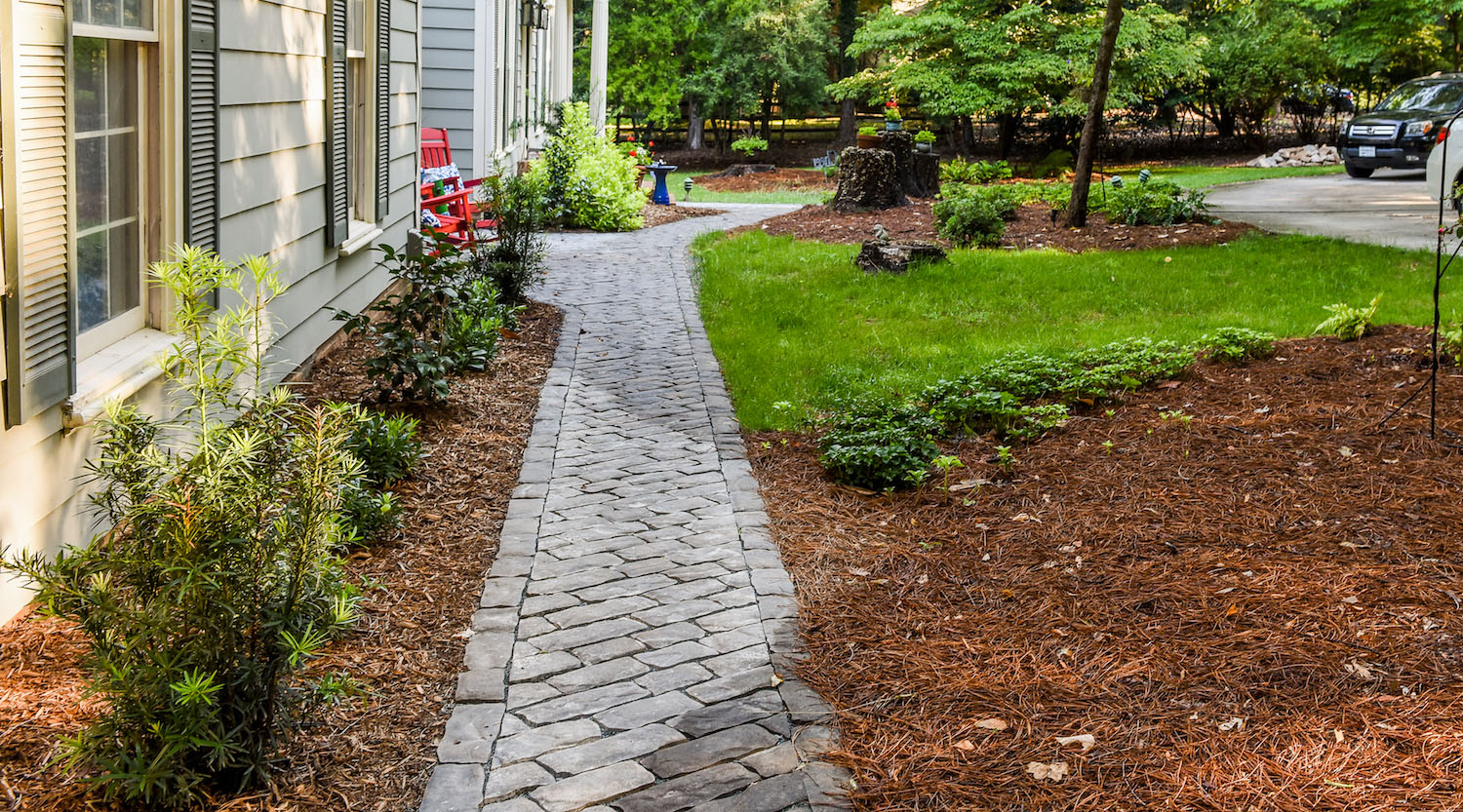 The homeowners had an old brick walkway that they wanted to replace and expand to include a patio area. We used Belgard “Old World” pavers to provide a permanent surface that also adds texture to the landscape. The end result fulfilled both practical as well as aesthetic needs.